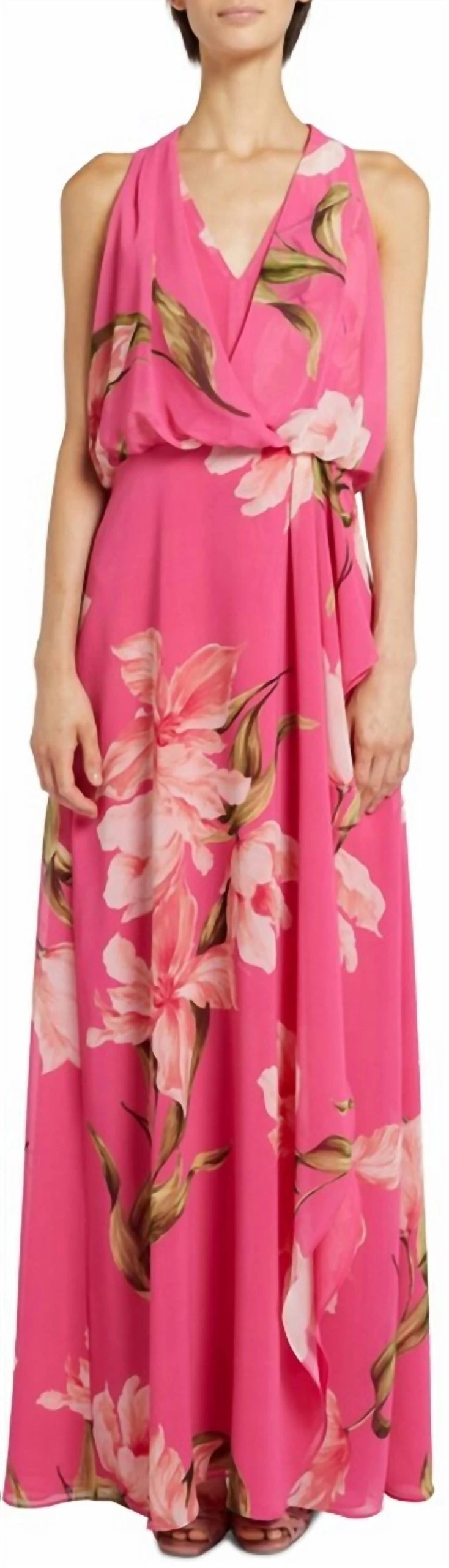 Marella Dress In Patterned Georgette, Straight Line With Cut At The Waist. . Invisible Zip Closure On The Back. Side Slit With Drape. Lined.