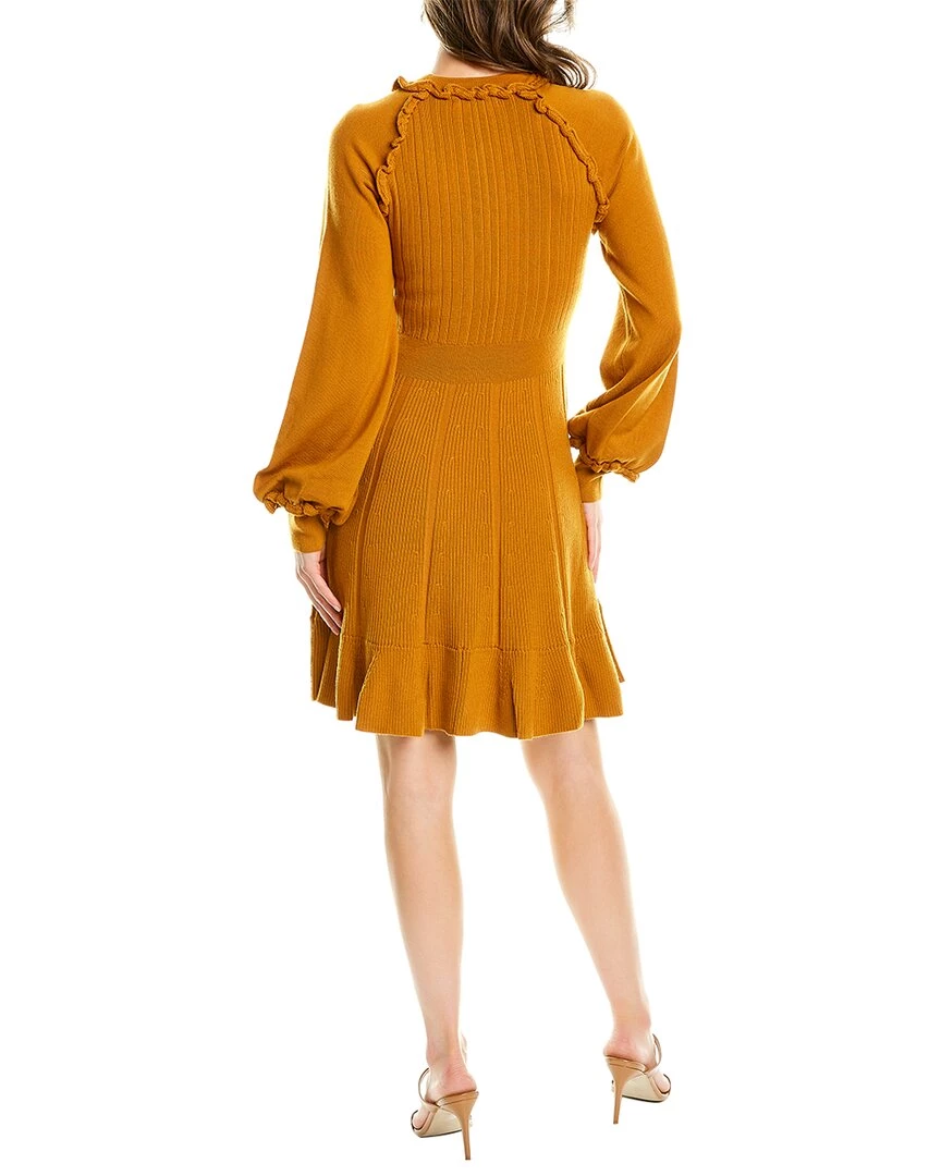 - Ruffle Wool-Blend Sweater In Copper With Ribbed Detailing And Balloon Sleeves
