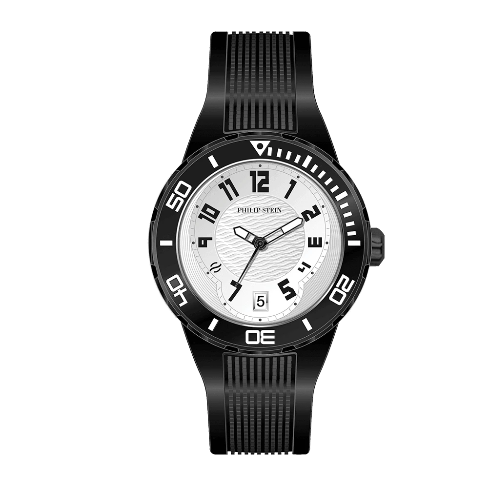 The perfect everyday companion for individuals who prefer to live life to the fullest, this high-performance Philip Stein men’s watch is one of the most unique and versatile timepieces from our Active Collection of quartz movement watches. A blackĀ band complements the striking centerpiece of this Philip Stein watch – its black accented whiteĀ dial is fitted with our proprietary Natural Frequency Technology to help you enjoy more energy and focus throughout the day.